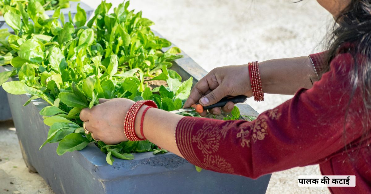 40 से 45 दिन बाद पालक की कटाई कर सकते हैं,नीचे के हिस्से से कटाई करें फिर पत्तियाँ फिर से बढ़ जाएंगी इस तरह तैयार पौध से 3 से 4 बार कटाई कर सकते हैं